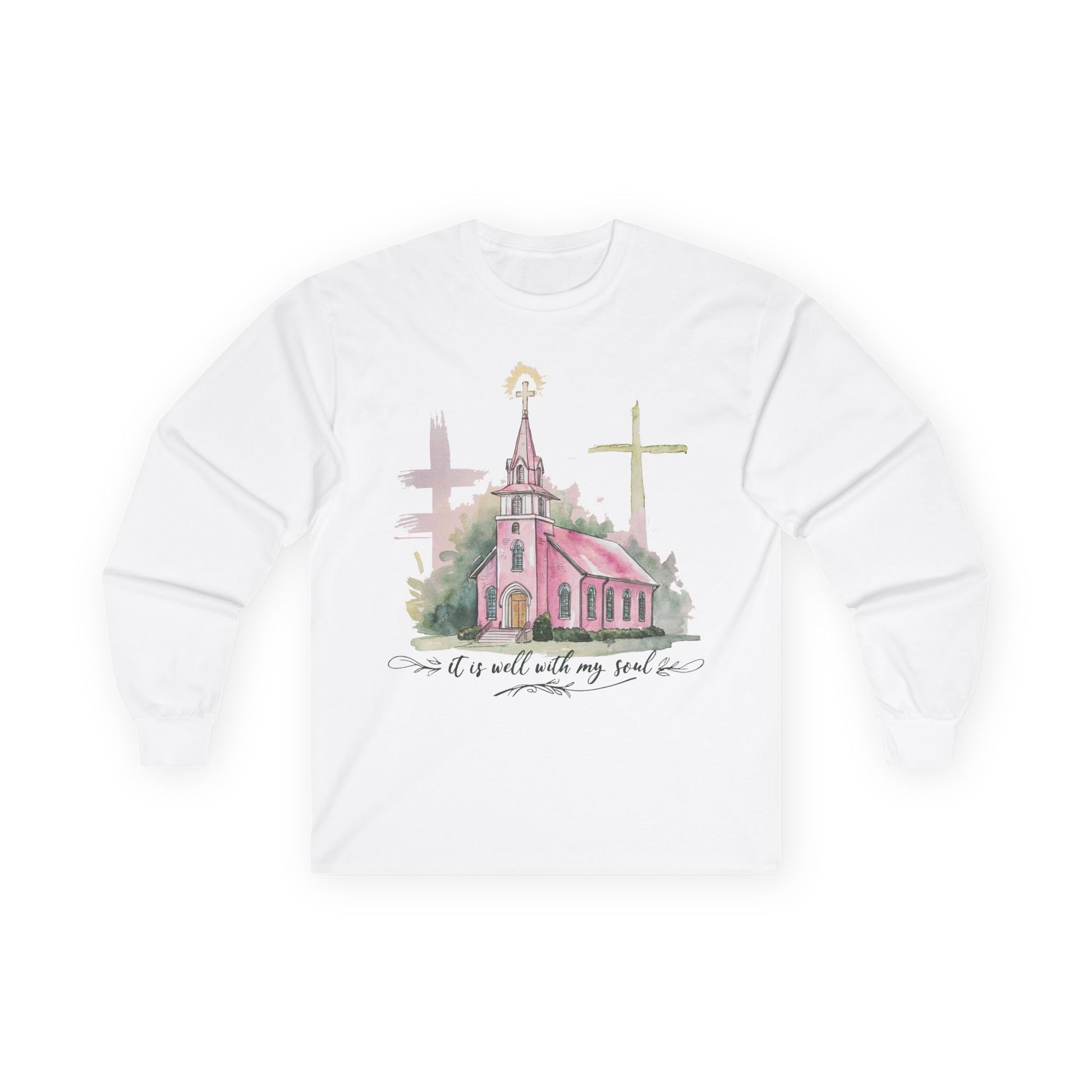 Introducing our Unisex Ultra Cotton Long Sleeve Tee, designed to bring a sense of comfort and inspiration to your wardrobe. Featuring a charming illustration of a serene church against a soft pastel backdrop, this tee radiates a warm, welcoming vibe perfect for everyday wear or special occasions. It's ideal for individuals who cherish their faith and want to express their spiritual journey through fashion. This versatile piece can seamlessly transition from casual gatherings to holiday celebrations, making it a thoughtful gift for friends and loved ones. It’s perfect for occasions such as Easter, Christmas, or any day when you wish to embody positivity and hope in your daily life.