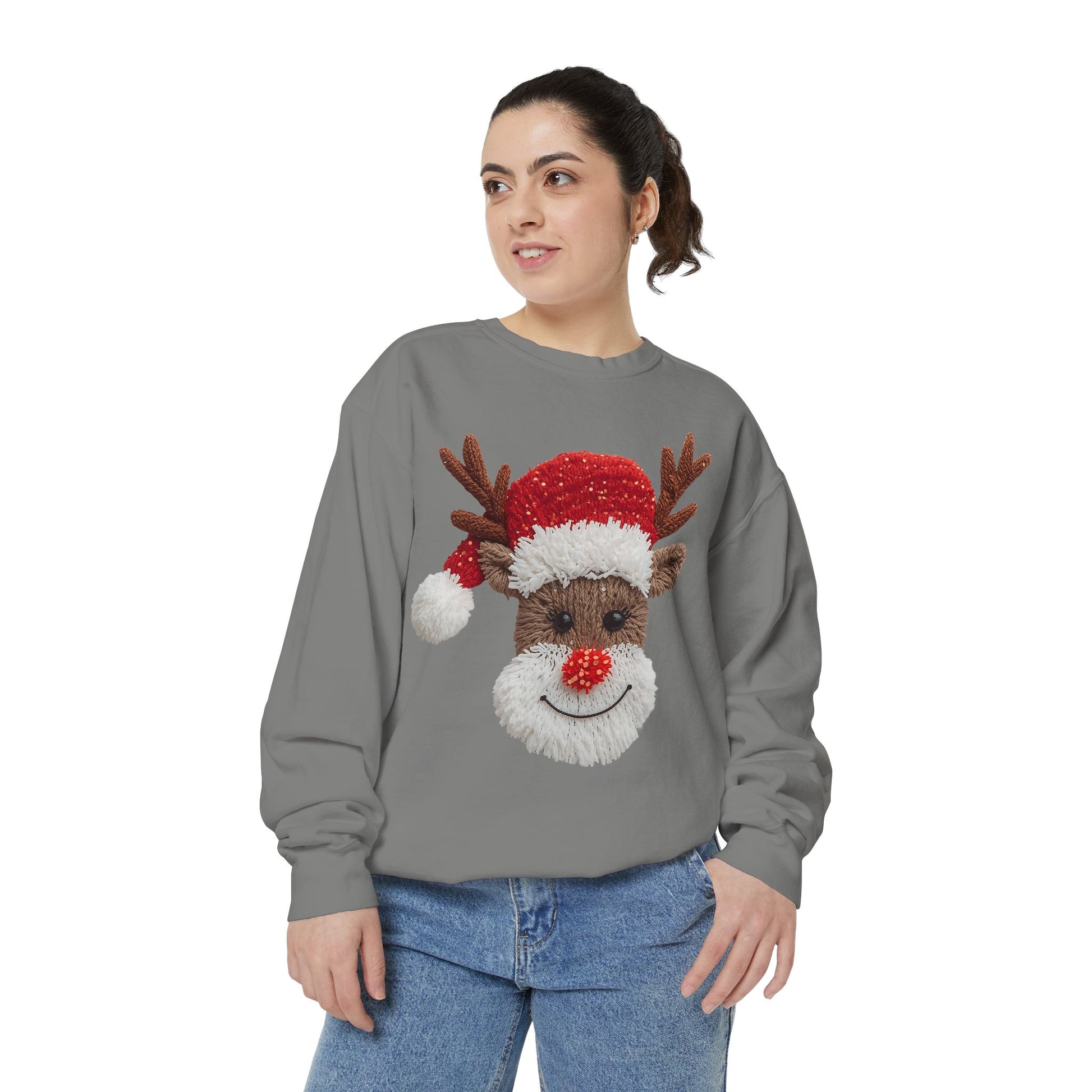 Cozy up in this unisex garment-dyed sweatshirt, designed to bring a cheerful vibe to your wardrobe this holiday season. The playful reindeer design adds a festive touch perfect for Christmas celebrations, family gatherings, or cozy nights at home. This sweatshirt is crafted to provide both comfort and style, making it an ideal addition to anyone's winter attire. Whether you're lounging by the fireplace or spreading holiday cheer at festive events, this piece will make you feel both snug and stylish. Perfect for holiday parties or as a delightful gift for friends and family, this sweatshirt is a must-have for anyone looking to embrace the joy of the season.