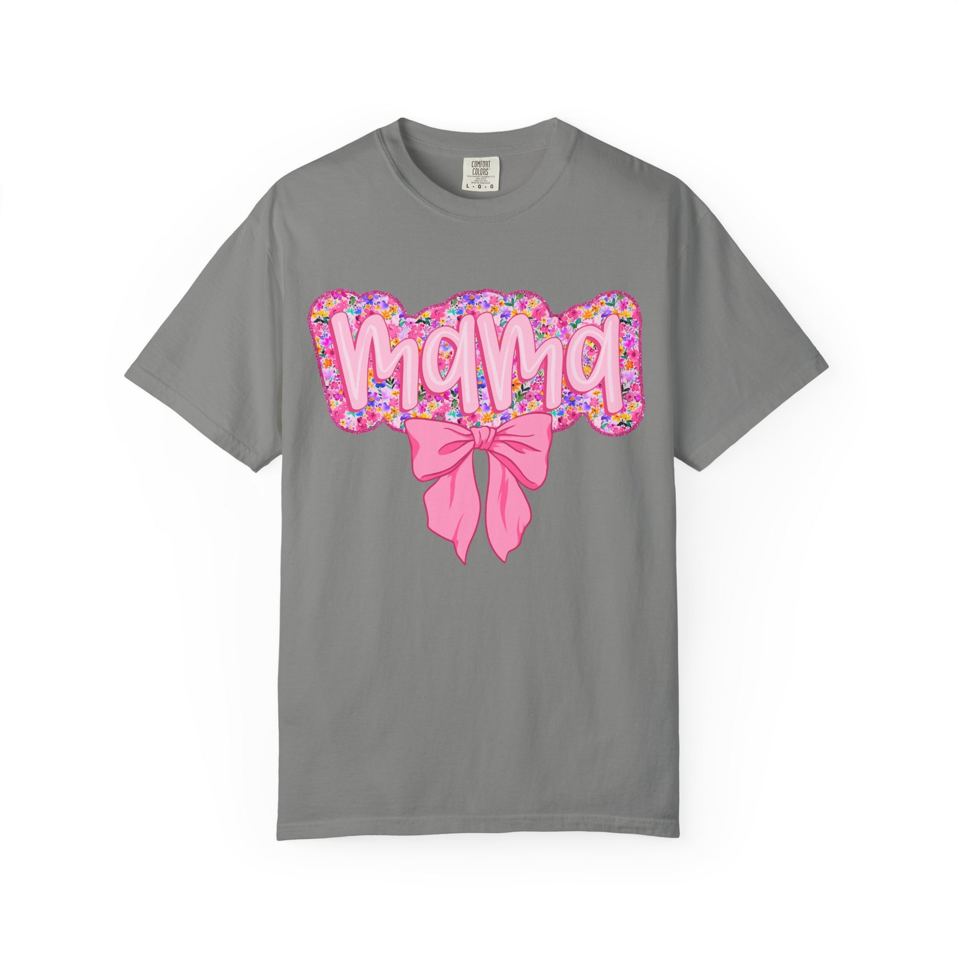 Embrace comfort and style with this relaxed-fit Unisex Garment-Dyed T-shirt. Its vibrant design, featuring the word 'mama' adorned with a playful bow, is perfect for celebrating motherhood and adding a cheerful touch to any outfit. The soft, pre-shrunk fabric ensures all-day comfort, making it an ideal choice for busy moms or anyone who wants to wear their love for family proudly. With a diverse color palette of 58 shades, you can easily express your personality or find the perfect gift for Mother's Day, birthdays, or just to brighten someone's day. This T-shirt is suitable for casual outings, vacations, or relaxing at home, providing a cozy vibe wherever you wear it.