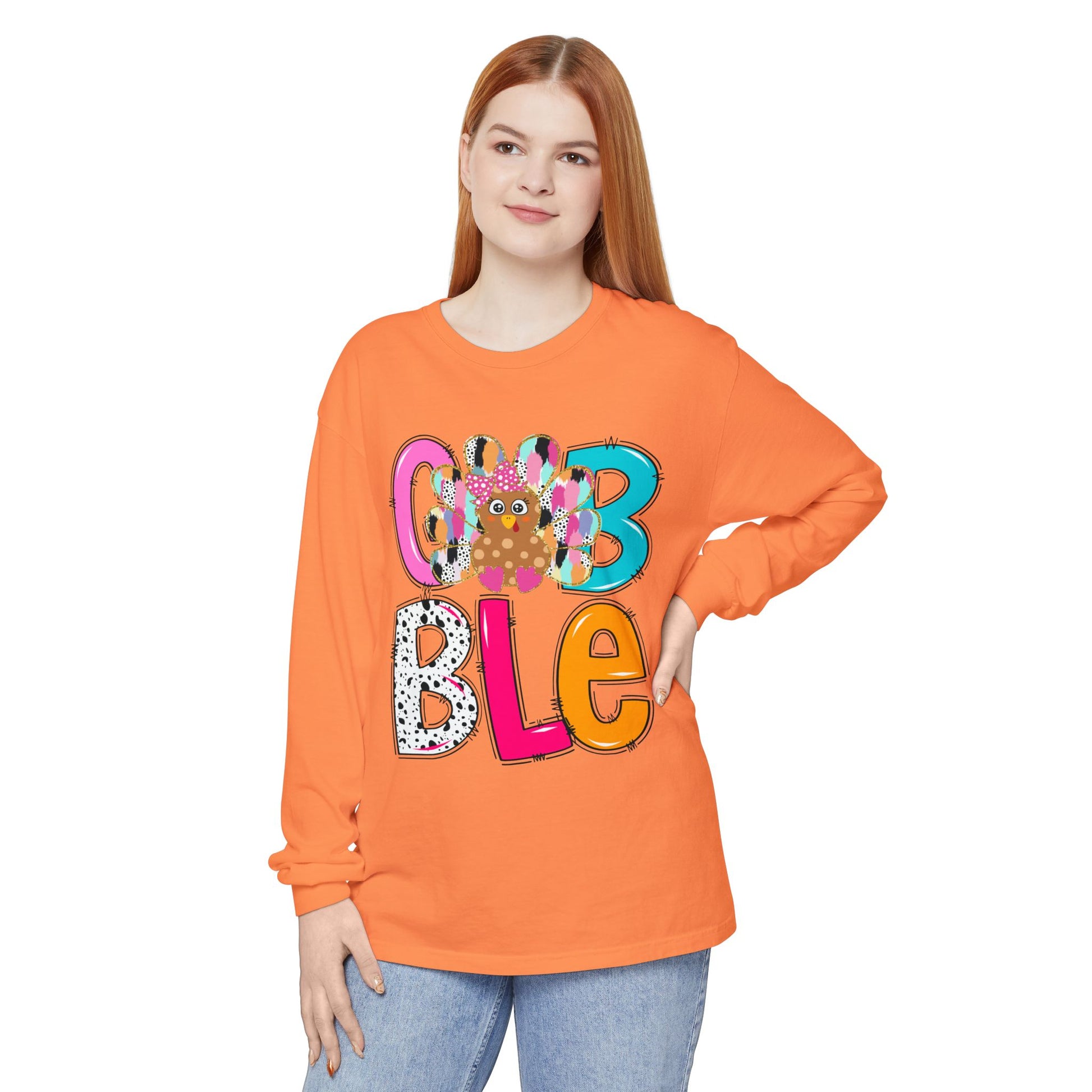 Embrace comfort and style with this vibrant unisex long sleeve t-shirt. With its cheerful orange hue and playful design, this shirt is perfect for casual outings, cozy gatherings, or simply lounging at home. The garment-dyed fabric offers a uniquely soft texture, making it a delightful addition to your wardrobe. This t-shirt resonates with those who appreciate a blend of fun and functionality, making it a great gift for friends and family during holidays like Thanksgiving or fun gatherings. Its classic fit ensures it flatters a wide range of body types, appealing to adults looking for a stylish layer to express their personality. Celebrate the season in style and comfort!