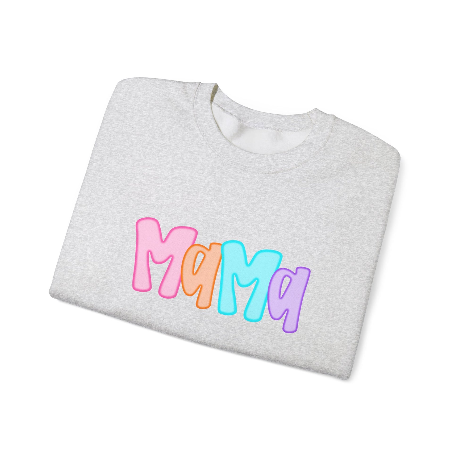 Soft, roomy crewneck with a joyful, hand-lettered “Mama” across the chest in squishy pastel colors. The mid-weight cotton-poly blend feels warm without weighing you down — the kind of sweatshirt you reach for on slow mornings with coffee, preschool drop-offs, or post-bedtime walks. Tubular knit construction and reinforced stitching keep the silhouette clean and durable, while the tear-away label lets you wear it itch-free. Subtle, playful design that sits comfortably in everyday family life and quiet celebratory moments with little ones.