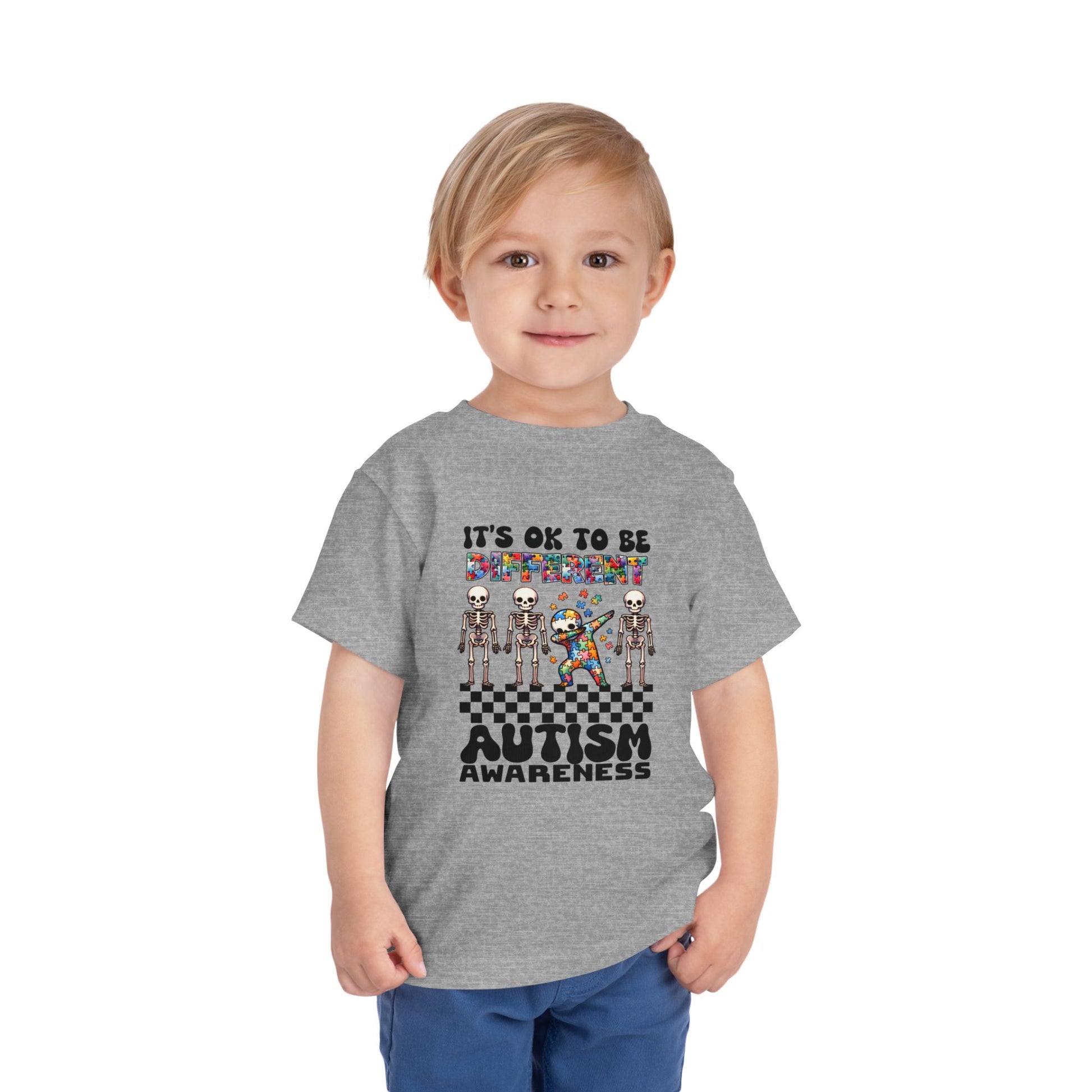 Celebrate uniqueness with this vibrant Toddler Short Sleeve Tee. Featuring a playful design that promotes autism awareness, this tee is perfect for little ones who embrace their individuality. Crafted from light, breathable fabric, it offers comfort and ease for a day of play or a special occasion. Ideal for parents who want to highlight important messages and values in their children's attire, this tee works especially well for events like Autism Awareness Month, birthdays, or themed celebrations. The cheerful graphics create a fun atmosphere, making it a staple in any toddler's wardrobe.